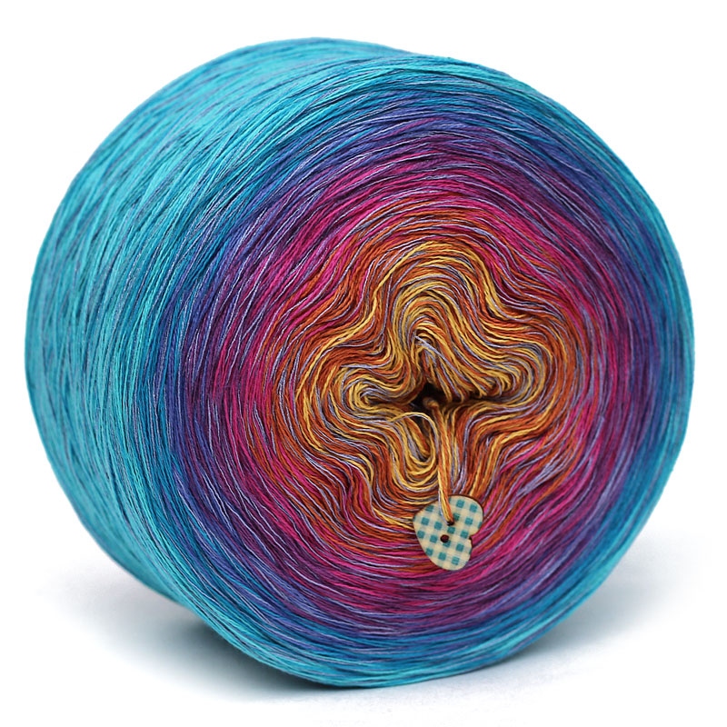 COTTONMIX CAKE is wonderful colours changing knitting Rolls made by 50% cotton, 50% acrylic threads. It's good for crochet lace or knitting products such as scarves, shawls, blouses or sweaters summer, tunics and dresses. About 100g is 375meters.