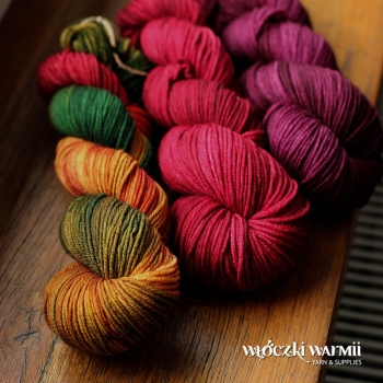 AMELIA is a hand dyed 100% merino wool. Midium yarn of very good quality, soft and pleasant to the touch. Try it in sweaters and accessories. Good for kid's clothes. As a result of the hand-dyeing process, each skein will be slightly different.
