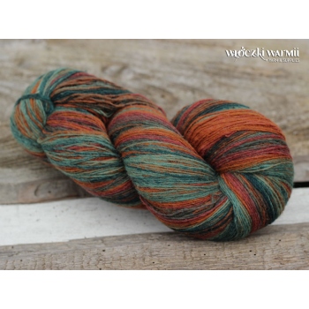 Inga 6/1 is a 100% natural hand dyed wool yarns. The yarns are made in Latvia from the wool which is collected from the sheeps grown up in Latvia. The yarns are presented in the hanks. The weight of one hank is not exactly the same every time. The yarns are much harder than for example merino wool. But what our local experienced knitters say is that after each washing the garment becomes softer and softer. And the garments are usualy extreamly warm if they are made out from this yarn. The yarns are beautifuly dyed. They have long colour sections and transitions from one section to another section are very soft and beautiful. If the hank would be of 100g weight it would have around 500m. The yarn is quite thin, it is very suitable for the scarves, shawls.
