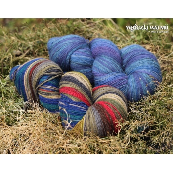 Inga 6/1 is a 100% natural hand dyed wool yarns. The yarns are made in Latvia from the wool which is collected from the sheeps grown up in Latvia. The yarns are presented in the hanks. The weight of one hank is not exactly the same every time. The yarns are much harder than for example merino wool. But what our local experienced knitters say is that after each washing the garment becomes softer and softer. And the garments are usualy extreamly warm if they are made out from this yarn. The yarns are beautifuly dyed. They have long colour sections and transitions from one section to another section are very soft and beautiful. If the hank would be of 100g weight it would have around 500m. The yarn is quite thin, it is very suitable for the scarves, shawls.