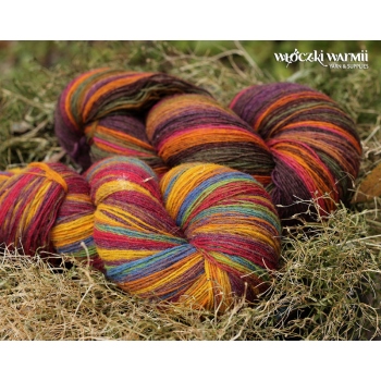 Inga 6/1 is a 100% natural hand dyed wool yarns. The yarns are made in Latvia from the wool which is collected from the sheeps grown up in Latvia. The yarns are presented in the hanks. The weight of one hank is not exactly the same every time. The yarns are much harder than for example merino wool. But what our local experienced knitters say is that after each washing the garment becomes softer and softer. And the garments are usualy extreamly warm if they are made out from this yarn. The yarns are beautifuly dyed. They have long colour sections and transitions from one section to another section are very soft and beautiful. If the hank would be of 100g weight it would have around 500m. The yarn is quite thin, it is very suitable for the scarves, shawls.