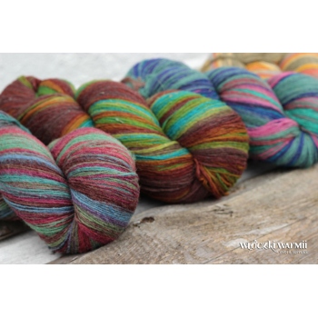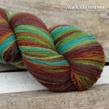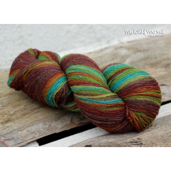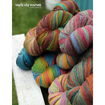 Inga 6/1 is a 100% natural hand dyed wool yarns. The yarns are made in Latvia from the wool which is collected from the sheeps grown up in Latvia. The yarns are presented in the hanks. The weight of one hank is not exactly the same every time. The yarns are much harder than for example merino wool. But what our local experienced knitters say is that after each washing the garment becomes softer and softer. And the garments are usualy extreamly warm if they are made out from this yarn. The yarns are beautifuly dyed. They have long colour sections and transitions from one section to another section are very soft and beautiful. If the hank would be of 100g weight it would have around 500m. The yarn is quite thin, it is very suitable for the scarves, shawls.