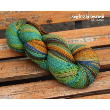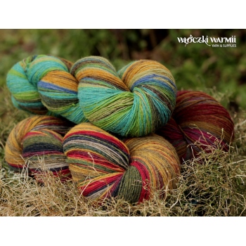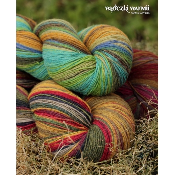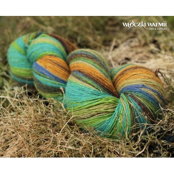 Inga 6/1 is a 100% natural hand dyed wool yarns. The yarns are made in Latvia from the wool which is collected from the sheeps grown up in Latvia. The yarns are presented in the hanks. The weight of one hank is not exactly the same every time. The yarns are much harder than for example merino wool. But what our local experienced knitters say is that after each washing the garment becomes softer and softer. And the garments are usualy extreamly warm if they are made out from this yarn. The yarns are beautifuly dyed. They have long colour sections and transitions from one section to another section are very soft and beautiful. If the hank would be of 100g weight it would have around 500m. The yarn is quite thin, it is very suitable for the scarves, shawls.