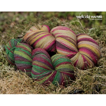 Inga 6/1 is a 100% natural hand dyed wool yarns. The yarns are made in Latvia from the wool which is collected from the sheeps grown up in Latvia. The yarns are presented in the hanks. The weight of one hank is not exactly the same every time. The yarns are much harder than for example merino wool. But what our local experienced knitters say is that after each washing the garment becomes softer and softer. And the garments are usualy extreamly warm if they are made out from this yarn. The yarns are beautifuly dyed. They have long colour sections and transitions from one section to another section are very soft and beautiful. If the hank would be of 100g weight it would have around 500m. The yarn is quite thin, it is very suitable for the scarves, shawls.