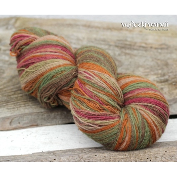 Inga 6/1 is a 100% natural hand dyed wool yarns. The yarns are made in Latvia from the wool which is collected from the sheeps grown up in Latvia. The yarns are presented in the hanks. The weight of one hank is not exactly the same every time. The yarns are much harder than for example merino wool. But what our local experienced knitters say is that after each washing the garment becomes softer and softer. And the garments are usualy extreamly warm if they are made out from this yarn. The yarns are beautifuly dyed. They have long colour sections and transitions from one section to another section are very soft and beautiful. If the hank would be of 100g weight it would have around 500m. The yarn is quite thin, it is very suitable for the scarves, shawls.