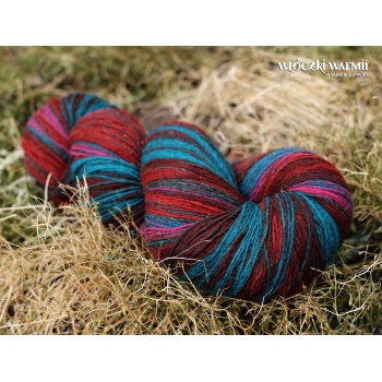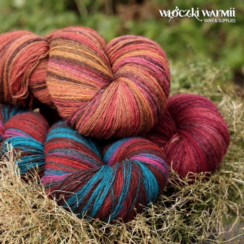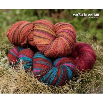Inga 6/1 is a 100% natural hand dyed wool yarns. The yarns are made in Latvia from the wool which is collected from the sheeps grown up in Latvia. The yarns are presented in the hanks. The weight of one hank is not exactly the same every time. The yarns are much harder than for example merino wool. But what our local experienced knitters say is that after each washing the garment becomes softer and softer. And the garments are usualy extreamly warm if they are made out from this yarn. The yarns are beautifuly dyed. They have long colour sections and transitions from one section to another section are very soft and beautiful. If the hank would be of 100g weight it would have around 500m. The yarn is quite thin, it is very suitable for the scarves, shawls.