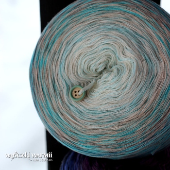 - COTTONMIX CAKE from the ART series, 1500m long, with a 250m wrap of the last color. The skein consists of 4 cotton-acrylonitrile yarns (50% cotton, 50% acrylic) wound to create a knit with a subtle, shaded ombre effect. Some compositions are made with as many as 12 colors, guaranteeing a unique effect and a fun knitting experience. A knot is added where the next color is added. The yarn used to make these cakes is soft and pleasant to the touch, made in Germany, and certified to OEX-TEX Standard 100.