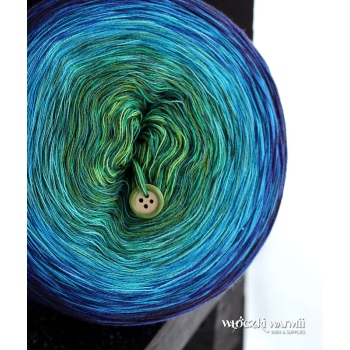 - COTTONMIX CAKE from the ART series, 1500m long, with a 250m wrap of the last color. The skein consists of 4 cotton-acrylonitrile yarns (50% cotton, 50% acrylic) wound to create a knit with a subtle, shaded ombre effect. Some compositions are made with as many as 12 colors, guaranteeing a unique effect and a fun knitting experience. A knot is added where the next color is added. The yarn used to make these cakes is soft and pleasant to the touch, made in Germany, and certified to OEX-TEX Standard 100.