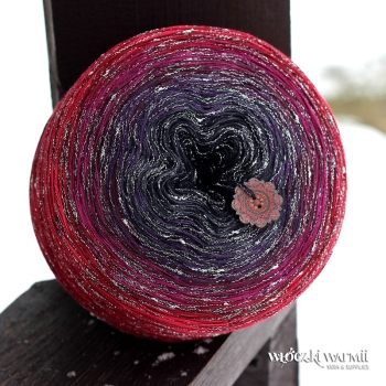 Kolory w motku: granat, melanżowy granat, fiolet, burgund, purpura, bordo, czerwień + srebrne mini niupki na czarnej nitce