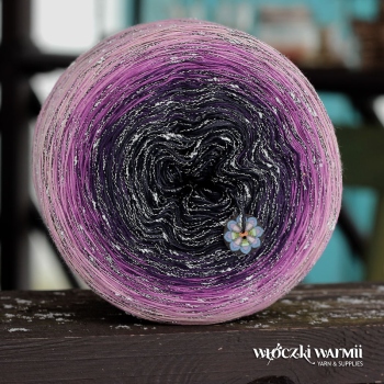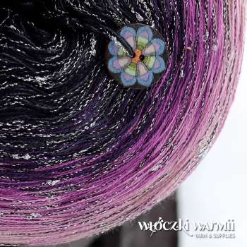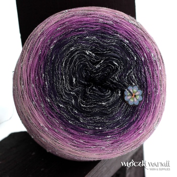 Kolory w motku: granat, melanżowy granat, fiolet, różany, jasny róż + srebrne mini niupki na czarnej nitce
