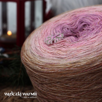 Kolory w motku: lawendowy, różowy, morelowy, jasnoróżowy, beżowy, karmelowy + melanżowa kolorowa bawełniana nitka :)
