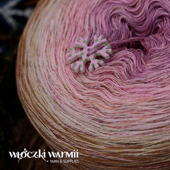 COTTONMIX CAKE SUMMER to włóczka przeznaczona na druty lub szydełko w formie smakowitego torciku z płynnymi przejściami kolorów. Motki są nawijane ręcznie, z trzech nitek bawełniano-akrylowej przędzy (50% bawełna, 50% akryl) i dodatku  ozdobnej bawełnianej lub bawełniano-mieszanej nitki, w ten sposób, aby tworzyć dzianinę o subtelnym, cieniowanym efekcie ombre. W miejscu dołączenia kolejnego koloru jest węzełek. Przędza, z której wykonujemy torciki jest miękka i miła w dotyku, została wyprodukowana w Niemczech i posiada certyfikat OEX-TEX Standard 1000. Przykładowa waga 100g zawiera ok. 500m nitki. Z jednego motka 1000m - można wykonać średnią chustę, z 1200m dużą, a z 1500m letnią bluzeczkę lub sukienkę.