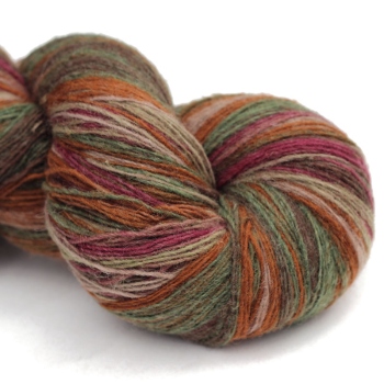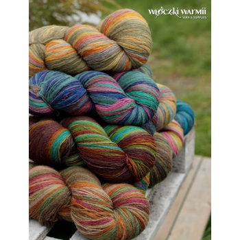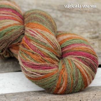 Inga 6/1 to naturalna organiczna 100% wełna, produkowana z przędzy wyłącznie z łotewskich owiec. Włóczka jest wolna od obróbki chemicznej, zawiera lanolinę, olej przędzalniczy jak i drobne źdźbła trawy. Włóczka jest ręcznie farbowana na melanż przenikających się kolorów - w gotowym wyrobie układa się w pasy delikatnie przenikających się odcieni: beżu, rudości, bordo, mlecznego brązu i khaki. Poszczególne kolory są farbowane w niewielkich partiach, wiec układ barwny jest niepowtarzalny i unikatowy. Warto uwzględnić to w ilości kupowanej włóczki, gdyż dobranie identycznego odcienia może być niemożliwe. Nitka jest pojedyncza, lekko skręcona 6/1 ply, zawiera lanolinę. Nić jest nieco rustykalna i szorstka, lecz z każdym praniem nabiera miekkości. Włóczka nadaje się na wszelkie zimowe wyroby i chusty. Bardzo wydajny metraż - ok. 500 m w 100g. Wełna ta może "podgryzać" osoby o wrażliwej skórze. Włóczka zwinięta w precel, o nieregularnej wadze.