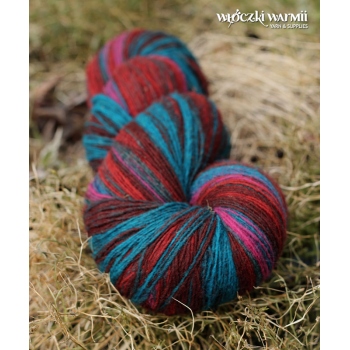 Inga 6/1 to naturalna organiczna 100% wełna, produkowana z przędzy wyłącznie z łotewskich owiec. Włóczka jest wolna od obróbki chemicznej, zawiera lanolinę, olej przędzalniczy jak i drobne źdźbła trawy. Włóczka jest farbowana na melanż przenikających się kolorów - w gotowym wyrobie układa się w pasy delikatnie przenikających się odcieni: petrolu, ciemnego brązu, bordo i amarantu. Poszczególne kolory są farbowane w niewielkich partiach, więc układ barwny jest niepowtarzalny i unikatowy. Warto uwzględnić to w ilości kupowanej włóczki, gdyż dobranie identycznego odcienia może być niemożliwe. Nitka jest pojedyncza, lekko skręcona 6/1 ply, zawiera lanolinę. Nić jest nieco rustykalna i szorstka, lecz z każdym praniem nabiera miękkości. Włóczka nadaje się na wszelkie zimowe wyroby i chusty. Bardzo wydajny metraż - ok. 500 m w 100g. Wełna ta może "podgryzać" osoby o wrażliwej skórze. Włóczka zwinięta w precel, o nieregularnej wadze.
