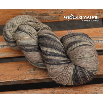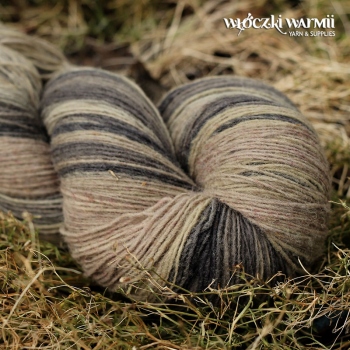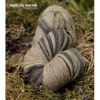 Inga 6/1 to naturalna orgniczna 100% wełna, produkowana z przędzy wyłącznie z łotewskich owiec. Włóczka jest wolna od obróbki chemicznej, zawiera lanolinę, olej przędzalniczy jak i drobne źdźbła trawy. Włóczka jest ręcznie farbowana na melanż przenikających się kolorów - w gotowym wyrobie układa się w pasy delikatnie przenikających się odcieni: beżu, piaskowego, szarości i grafitu. Poszczególne kolory są farbowane w niewielkich partiach, wiec układ barwny jest niepowtarzalny i unikatowy. Warto uwzględnić to w ilości kupowanej włóczki, gdyż dobranie identycznego odcienia może być niemożliwe. Nitka jest pojedyncza, lekko skręcona 6/1 ply, zawiera lanolinę. Nić jest nieco rustykalna i szorstka, lecz z każdym praniem nabiera miękkości. Włóczka nadaje się na wszelkie zimowe wyroby i chusty. Bardzo wydajny metraż - ok. 500 m w 100g. Wełna ta może "podgryzać" osoby o wrażliwej skórze. Włóczka zwinięta w precel, o nieregularnej wadze.