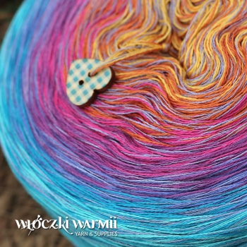 Kolory w motku: żółty, koniak, różowy, fioletowy, liliowy, turkus, lazur + liliowa wiskozowa nitka
