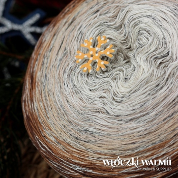 Kolory w motku: śmietanka, jasny beż, beż, karmel, orzechowy + kremowo-szara lniana nitka