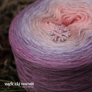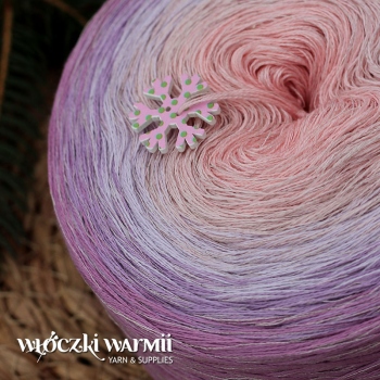 Kolory w motku: morela, pastelowy róż, jasny fiolet, fiolet, różany + opalizująca różowo kremowa nitka