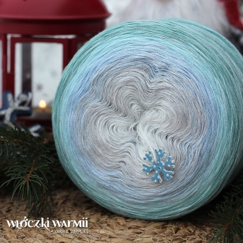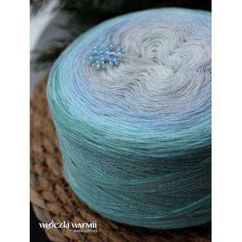Kolory w motku: biały, jasnoszary, błękitny, jasnoniebieski, amazonit + opalizujący holograficznie perłowy lurex