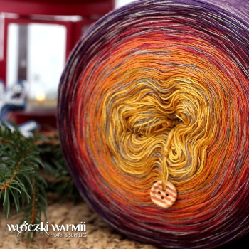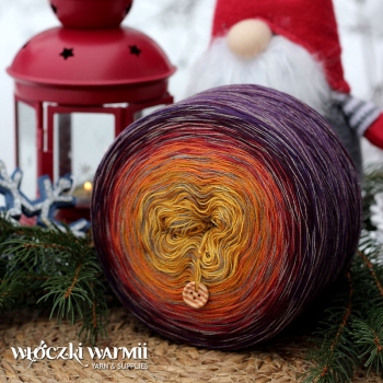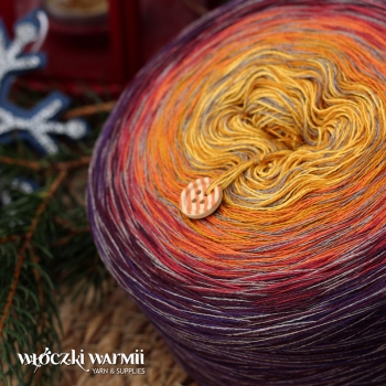 Kolory w motku: żółty, musztarda, koniak, rdza, burgund, fiolet + beżowa melanżowa wełniano-bawełniana nitka