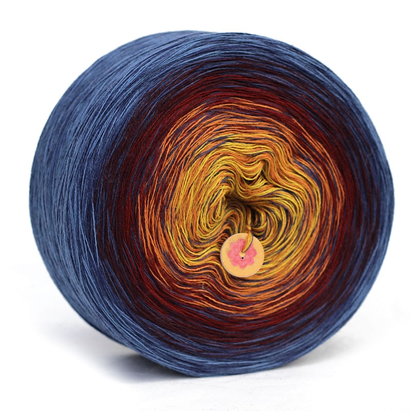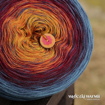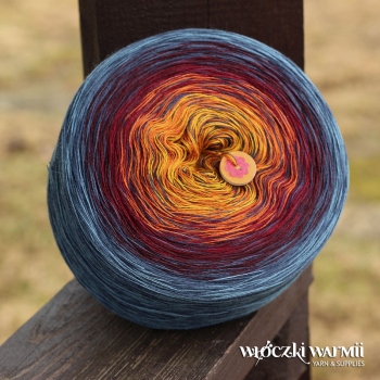 MERINOMIX CAKE SHINE to włóczka przeznaczona na druty lub szydełko w formie smakowitego torciku z płynnymi przejściami kolorów. Motki są nawijane ręcznie, z trzech nitek merynosowo-akrylowej przędzy (50% wełna merino, 50% akryl) i dodatku lurexowo-wiskozowej nitki w ten sposób, aby tworzyć dzianinę o subtelnym, cieniowanym efekcie ombre. W miejscu dołączenia kolejnego koloru jest węzełek. Przędza, z której wykonujemy torciki jest miękka i miła w dotyku, została wyprodukowana w Niemczech i posiada certyfikat OEX-TEX Standard 1000. Przykładowa waga 100g zawiera ok. 500m nitki. Z jednego motka 1000m - można wykonać średnią chustę, z 1200m dużą, a z 1500m letnią bluzeczkę lub sukienkę.
