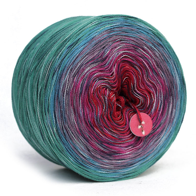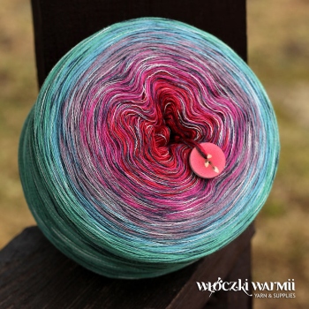 COTTONMIX CAKE SHINE to włóczka przeznaczona na druty lub szydełko w formie smakowitego torciku z płynnymi przejściami kolorów. Motki są nawijane ręcznie, z trzech nitek bawełniano-akrylowej przędzy (50% bawełna, 50% akryl) i dodatku lurexowej nitki w ten sposób, aby tworzyć dzianinę o subtelnym, cieniowanym efekcie ombre. W miejscu dołączenia kolejnego koloru jest węzełek. Przędza, z której wykonujemy torciki jest miękka i miła w dotyku, została wyprodukowana w Niemczech i posiada certyfikat OEX-TEX Standard 1000. Przykładowa waga 100g zawiera ok. 500m nitki. Z jednego motka 1000m - można wykonać średnią chustę, z 1200m dużą, a z 1500m letnią bluzeczkę lub sukienkę.