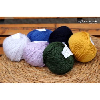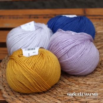 Skład: 60% wełna, 20% jedwab, 20% kaszmir   |   Waga motka: 25 g   |    Długość nitki w motku: 112 m