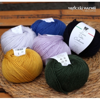 LANA SETA CASHEMRE to niesamowicie ekskluzywna mieszanka wełny, jedwabiu i kaszmiru (60% wełna, 20% jedwab, 20% kaszmir) występująca w pięknej gamie kolorystycznej. Włóczka typu lace o mocnym skręcie jest niezwykle miła, miękka i sprężysta w dotyku. Przypomina w dotyku "pierzastą chmurkę" i jest idealna nawet dla wrażliwej skóry. Dzięki dodatkowi jedwabiu ma piękny połysk, a kaszmir dodaje jej lekkości i puszystości. Nadaje się na wszelkie całoroczne wyroby, swetry, jak i chusty, szale, delikatne dodatki. Doskonała dla dzieci. Włóczka produkcji włoskiej.