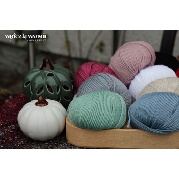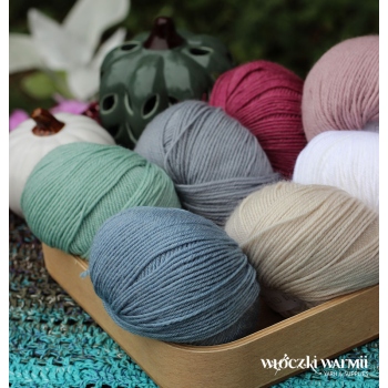 Skład: 60% wełna, 20% jedwab, 20% kaszmir   |   Waga motka: 25 g   |    Długość nitki w motku: 112 m