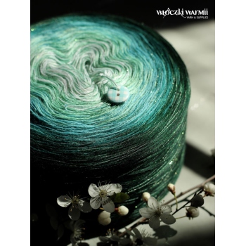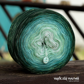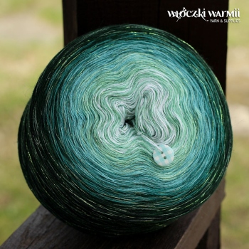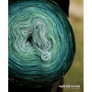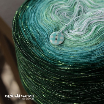 Kolory w motku: mix mięty, patyny, szmaragu i cmienych zieleni + dodatkowa szmaragdowa nitka z zielonym lurexem
