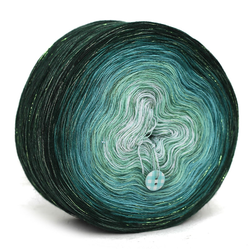 MERINOMIX CAKE SHINE to włóczka przeznaczona na druty lub szydełko w formie smakowitego torciku z płynnymi przejściami kolorów. Motki są nawijane ręcznie, z trzech nitek merynosowo-akrylowej przędzy (50% wełna merino, 50% akryl) i dodatku lurexowo-wiskozowej nitki w ten sposób, aby tworzyć dzianinę o subtelnym, cieniowanym efekcie ombre. W miejscu dołączenia kolejnego koloru jest węzełek. Przędza, z której wykonujemy torciki jest miękka i miła w dotyku, została wyprodukowana w Niemczech i posiada certyfikat OEX-TEX Standard 1000. Przykładowa waga 100g zawiera ok. 500m nitki. Z jednego motka 1000m - można wykonać średnią chustę, z 1200m dużą, a z 1500m letnią bluzeczkę lub sukienkę.