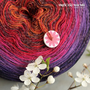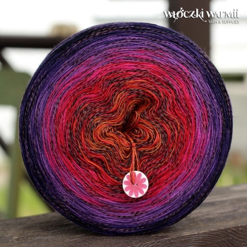 Kolory w motku: pomarańcz, czerwień, fuksja, ametyst, fiolet, ciemny granat + dodatkowa wełniana melanżowa burgundowa nitka