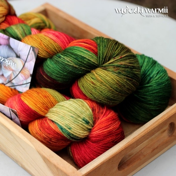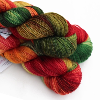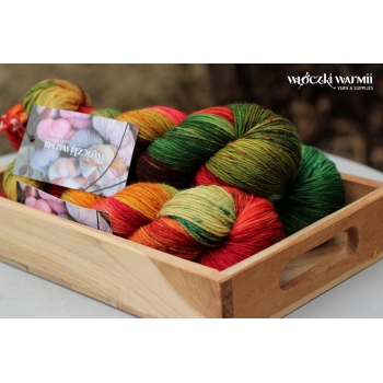 MIRELLA to ręcznie farbowana 100% jagnięca wełna merynosowa (100% virgin merino wool). Cienka, lecz wytrzymała włóczka jest niezwykle miła, miękka i sprężysta w dotyku. Kolory w motku to: melanż ciemnej zieleni, ochry, oliwki i pomarańczu z czerwienią i bordo. Nadaje się na wszelkie całoroczne wyroby, swetry, jak i chusty, szale, delikatne dodatki. Doskonała dla dzieci. Włóczka produkcji włoskiej. Ze względu na ręczne farbowane poszczególne motki mogą nieznacznie różnić się od siebie wybarwieniem i ilością odcieni. Aby zniwelować różnice w gotowym wyrobie zalecamy naprzemienne przerabianie nitki z 2 motków na raz.