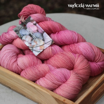 MIRELLA to ręcznie farbowana 100% jagnięca wełna merynosowa (100% virgin merino wool). Cienka, lecz wytrzymała włóczka jest niezwykle miła, miękka i sprężysta w dotyku. Kolory w motku to: pastelowy róż z nitką koralu, cętkowany mini jagodowymi piegami. Nadaje się na wszelkie całoroczne wyroby, swetry, jak i chusty, szale, delikatne dodatki. Doskonała dla dzieci. Włóczka produkcji włoskiej. Ze względu na ręczne farbowane poszczególne motki mogą nieznacznie różnić się od siebie wybarwieniem i ilością odcieni. Aby zniwelować różnice w gotowym wyrobie zalecamy naprzemienne przerabianie nitki z 2 motków na raz.