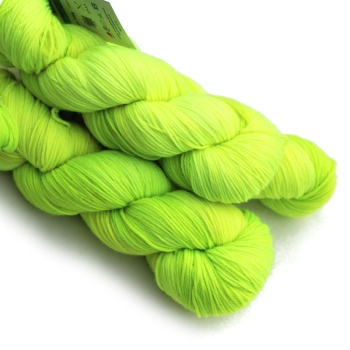 MIRELLA to ręcznie farbowana 100% jagnięca wełna merynosowa (100% virgin merino wool). Cienka, lecz wytrzymała włóczka jest niezwykle miła, miękka i sprężysta w dotyku. Kolory w motku to: neonowy żółty - brawnik fluo UV. Nadaje się na wszelkie całoroczne wyroby, swetry, jak i chusty, szale, delikatne dodatki. Doskonała dla dzieci. Włóczka produkcji włoskiej. Ze względu na ręczne farbowane poszczególne motki mogą nieznacznie różnić się od siebie wybarwieniem i ilością odcieni. Aby zniwelować różnice w gotowym wyrobie zalecamy naprzemienne przerabianie nitki z 2 motków na raz.