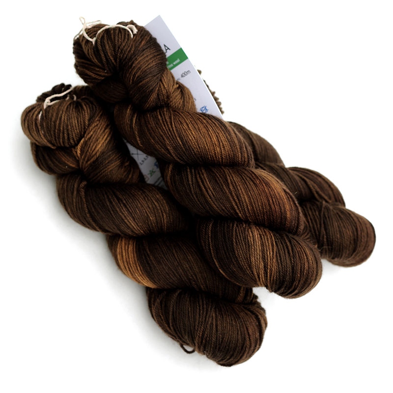 MIRELLA to ręcznie farbowana 100% jagnięca wełna merynosowa (100% virgin merino wool). Cienka, lecz wytrzymała włóczka jest niezwykle miła, miękka i sprężysta w dotyku. Kolory w motku to: ciemy brąz z cynamonowymi przecierkami. Nadaje się na wszelkie całoroczne wyroby, swetry, jak i chusty, szale, delikatne dodatki. Doskonała dla dzieci. Włóczka produkcji włoskiej. Ze względu na ręczne farbowane poszczególne motki mogą nieznacznie różnić się od siebie wybarwieniem i ilością odcieni. Aby zniwelować różnice w gotowym wyrobie zalecamy naprzemienne przerabianie nitki z 2 motków na raz.