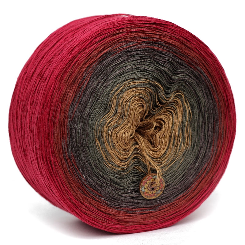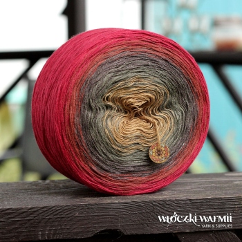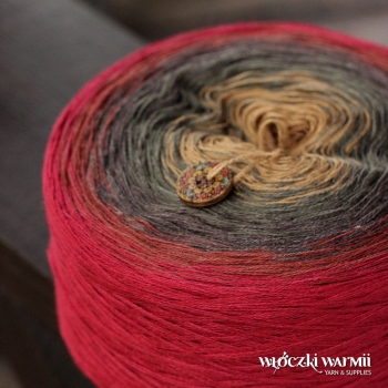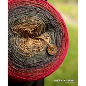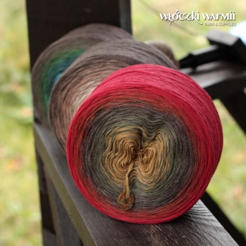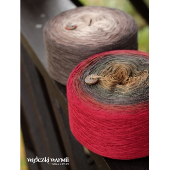 Kolory w motku to: musztarda, khaki, melanżowy ciemny brąz, terakota i czerwień
