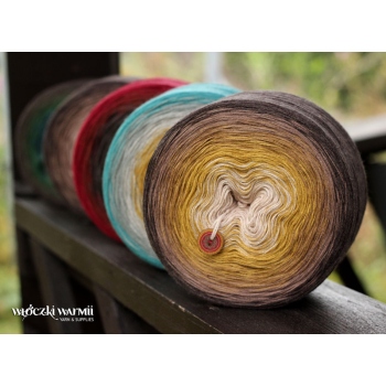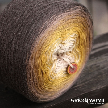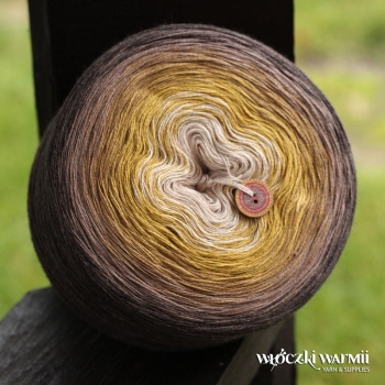 Kolory w motku to: beż, ochra, musztarda, kawa z mlekiem, melanżowy ciemny brąz