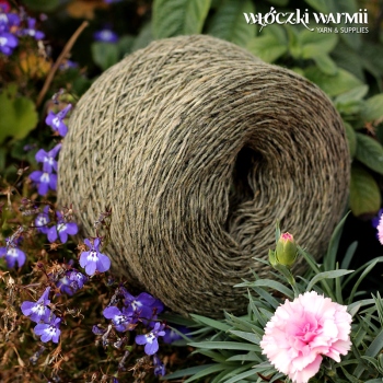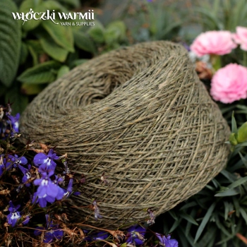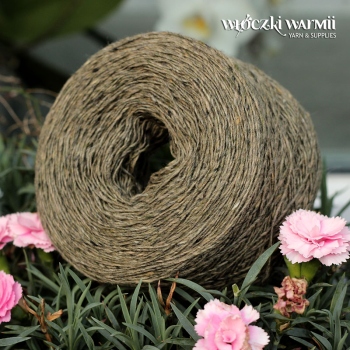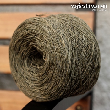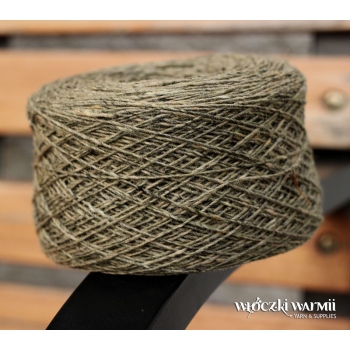 SOFT DONEGAL TWEED to delikatna 100% merynosowa przędza przpominająca w dzianinie tradycyjny irlandzki tweed Donegal. Jest to włóczka typu tweed produkcji irlandzkiej w postaci pojedynczej nitki (1 ply) poprzetykanej kolorowymi drobinkami. Kolory w motku to: oliwkowa zieleń, khaki z beżowo-ochrowo-ciemnymi niupkami.Włóczka pokryta jest olejem przędzalniczym, więc w robótce sprawia wrażenie "sznurkowatej i sztywnej". Gotową robótkę należy namoczyć w ciepłej wodzie z detergentem, a następnie delikatnie uprać, wypłukać, odcisnąć nadmiar wody i suszyć na płasko. Po takim zabiegu nitka pęcznieje, nabiera puszystości i staje się miękka. Nadaje się dla"wrażliwców". Ważne jest, aby przed rozpoczęciem pracy tak samo potraktować próbkę - co pozwoli nam na wiarygodną ocenę ilości oczek oraz odpowiedni dobór grubości drutów. Po praniu włóczka jest miękka w dotyku i ciepła, a kolory nieco jasniejsze. Nitkę należy przerabiać na grubszych drutach: 3,5 -4, gdyż dzianina po praniu puchnie, zwykle nieco rozszerza się a kurczy na długość. Przeznaczona na jesienno-zimowe chusty, szale, akcesoria, swetry. Wspaniale będą z niej wygladać wszelkie wyroby w warkocze i plastyczne wzory.