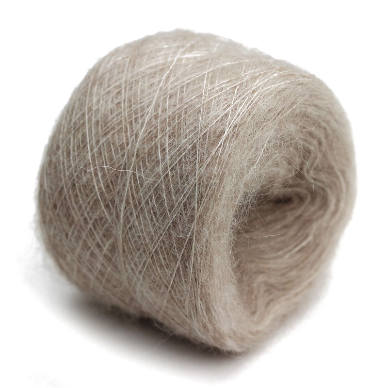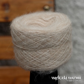 SURI ALPAKA MOHER to włóczka typu lace w formie cieniutkiego moherku, wykonana z suri alpaki z dodatkiem wełny i poliamidu (53%, 14%, 33%). Włóczka bardzo dobrej jakości produkcji włoskiej, miękka i delikatna dla skóry. Kolor jasny beż na biłej nitce daje efekt melanżu w typie "Stonewash". Włosek w nitce jest niewielki i bardzo miły, niegryzący w porównaniu do moheru wykonanego z włosa kóz, a dodatek poliamidu sprawia, że nitka jest mocna. Idealna do dziergania delikatnych chust, szali lub jako dodatkowa nitka do innej włóczki. W połączeniu z Mirellą lub Baby Supremo uzyskamy bardzo luksusową i miękką dzianinę. Bardzo wydajna - w 25g moteczku mamy aż 375 m. Przeznaczona na całoroczne wyroby. Włóczka wyprodukowana we Włoszech, certyfikowana przez A.I.A (Asociacion International de la Alpaca).