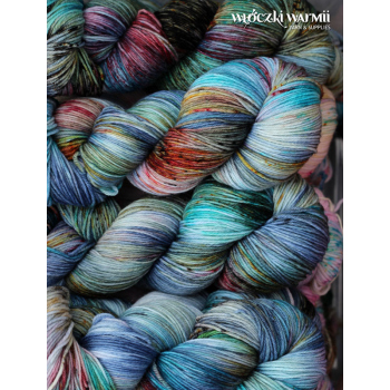 MIRELLA to ręcznie farbowana 100% jagnięca wełna merynosowa (100% virgin merino wool). Cienka, lecz wytrzymała włóczka jest niezwykle miła, miękka i sprężysta w dotyku. Kolory w motku to: melanż stalowego błękitu cętkowany czerwienią, brązem, granatem, turkusem i pomarańczem. Nadaje się na wszelkie całoroczne wyroby, swetry, jak i chusty, szale, delikatne dodatki. Doskonała dla dzieci. Włóczka produkcji włoskiej. Ze względu na ręczne farbowane poszczególne motki mogą nieznacznie różnić się od siebie wybarwieniem i ilością odcieni. Aby zniwelować różnice w gotowym wyrobie zalecamy naprzemienne przerabianie nitki z 2 motków na raz.