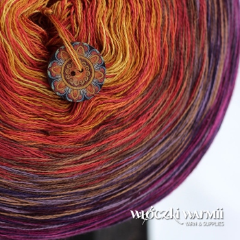 - COTTONMIX CAKE z serii ART o długości 1500m z dowijką ostatniego koloru 250m. Skład motka to 4 bawełniano-akrylowe nitki (50% bawełna, 50% akryl) nawijane w taki sposób, aby tworzyć dzianinę o subtelnym, cieniowanym efekcie ombre. Niektóre kompozycje powstały aż z 12 kolorów, co gwarantuje nietuzinkowy efekt i zabawę w trakcie dziergania.W miejscu dołączenia kolejnego koloru jest węzełek. Przędza, z której wykonujemy torciki jest miękka i miła w dotyku, została wyprodukowana w Niemczech i posiada certyfikat OEX-TEX Standard 100.